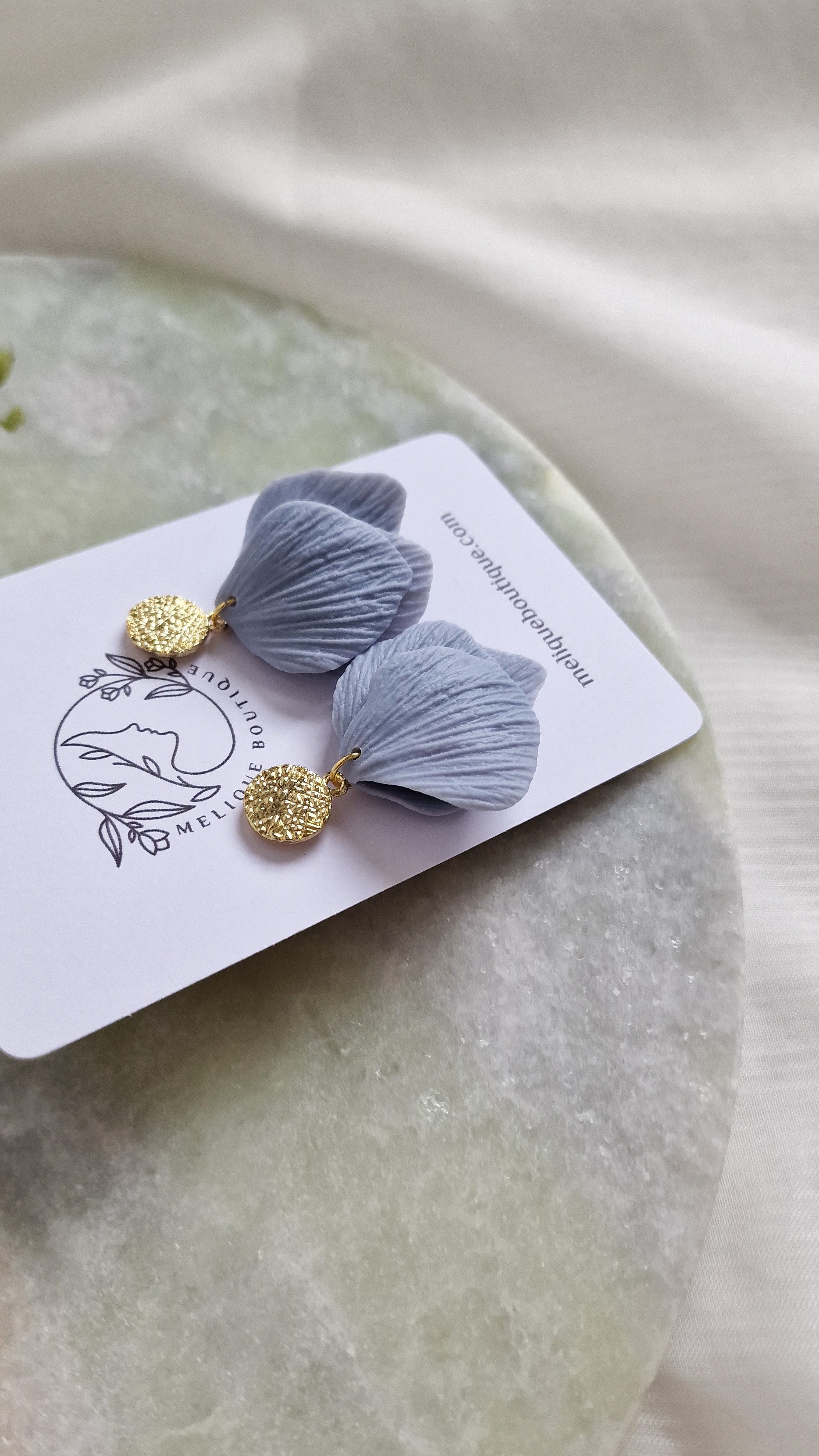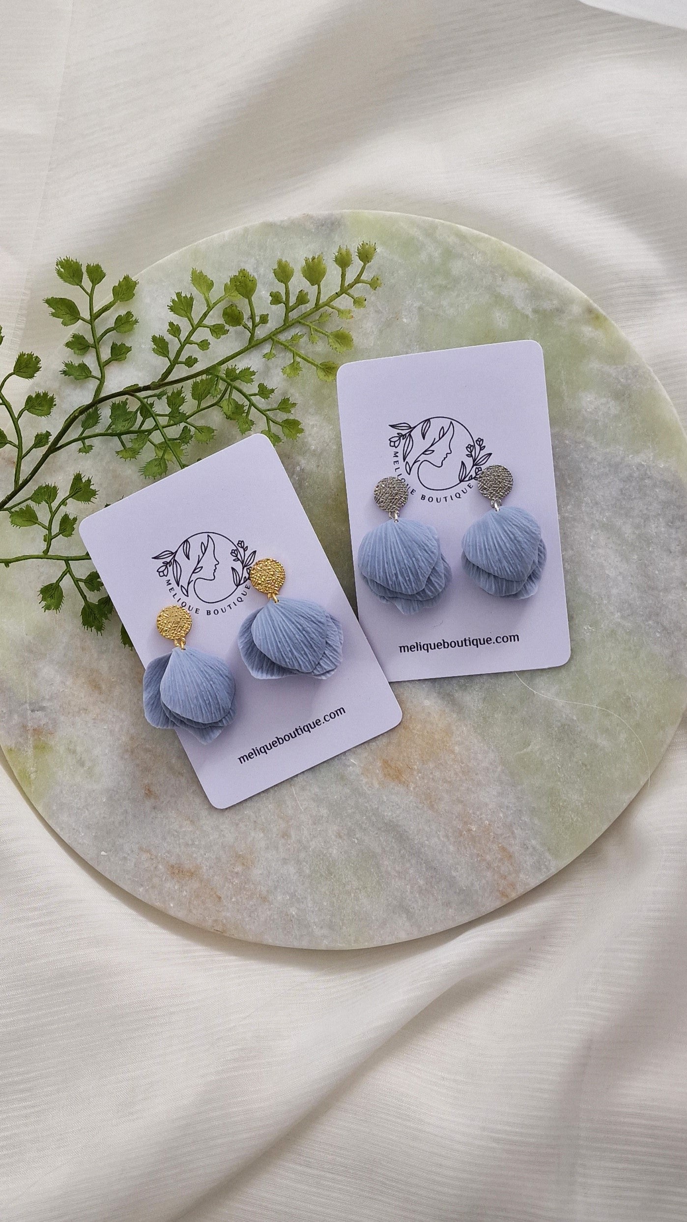 - These baby blue petal earrings are meticulously crafted from high-quality polymer clay, showcasing the versatility and artistry of this unique material.