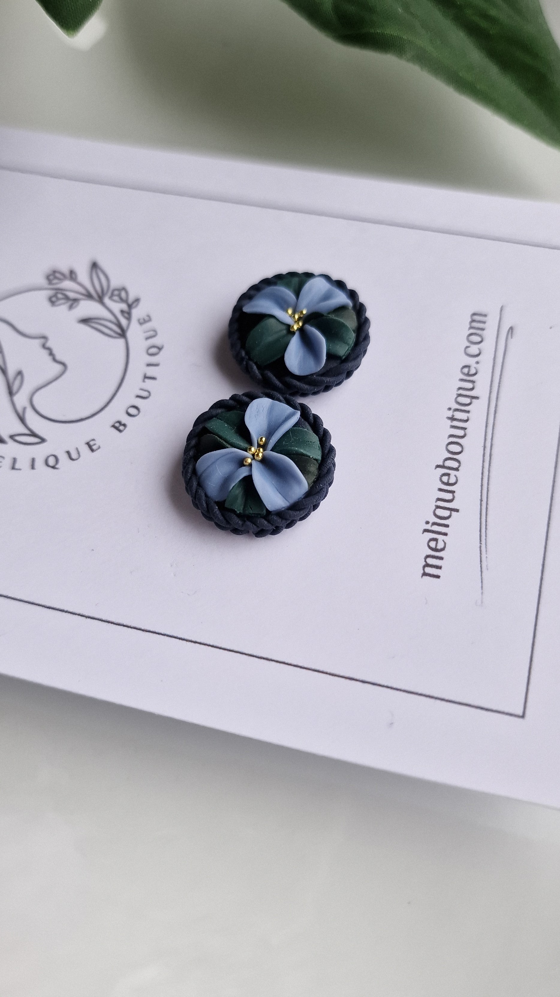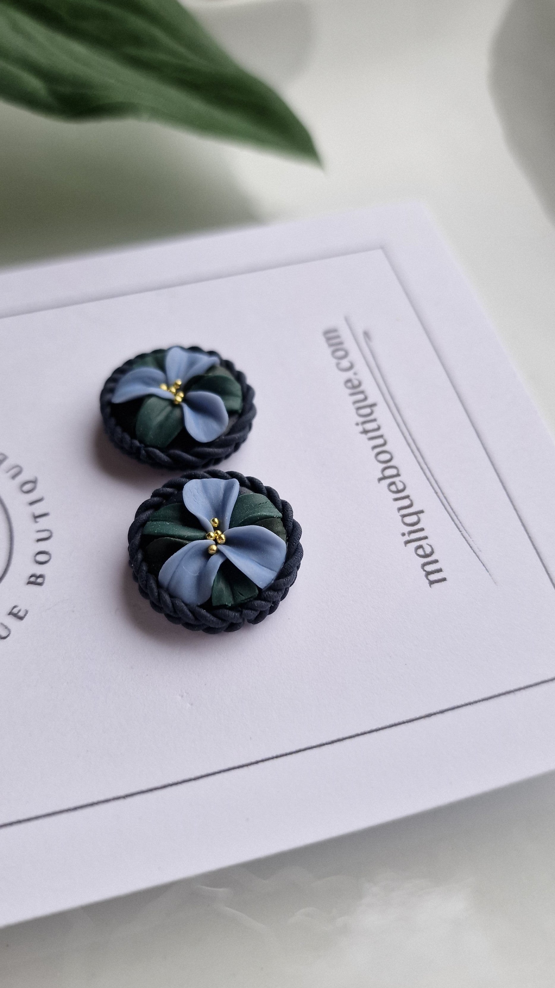 Introducing Bluebell Studs, our beautiful handmade polymer floral earrings that are perfect for adding a touch of festive cheer to your holiday outfit. These earrings feature delicate blue flowers with intricate details, creating a unique and elegant look that is sure to catch everyone's eye. With their stud design, they're easy to wear and add a subtle touch of glamour to any look. Get ready to sparkle this holiday season with Bluebell Studs.
