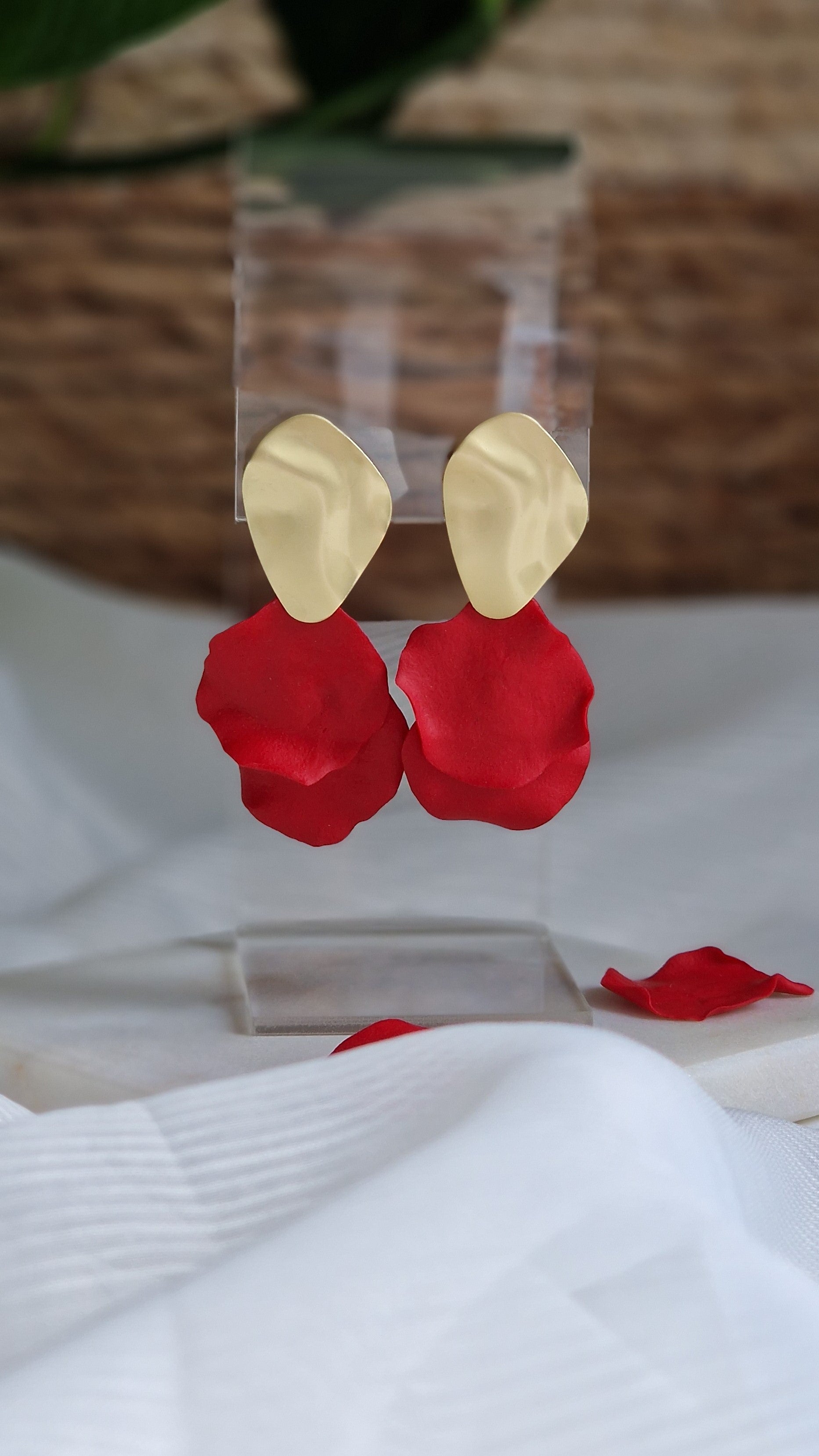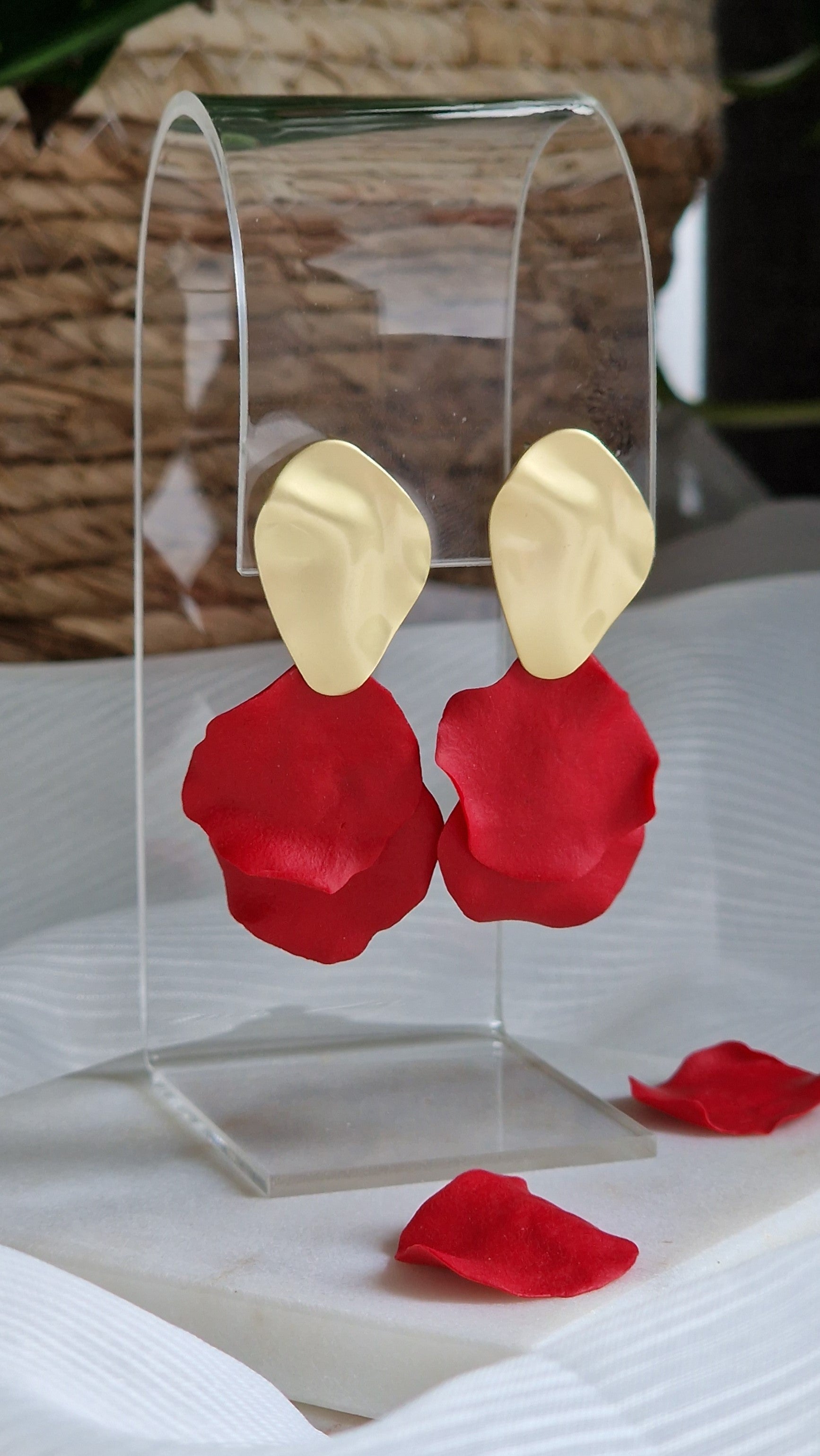 This delicate pair of petal earrings are truly an accessory that makes a difference in any outfit you choose. Each petal is handcrafted by hand with a lot of care.