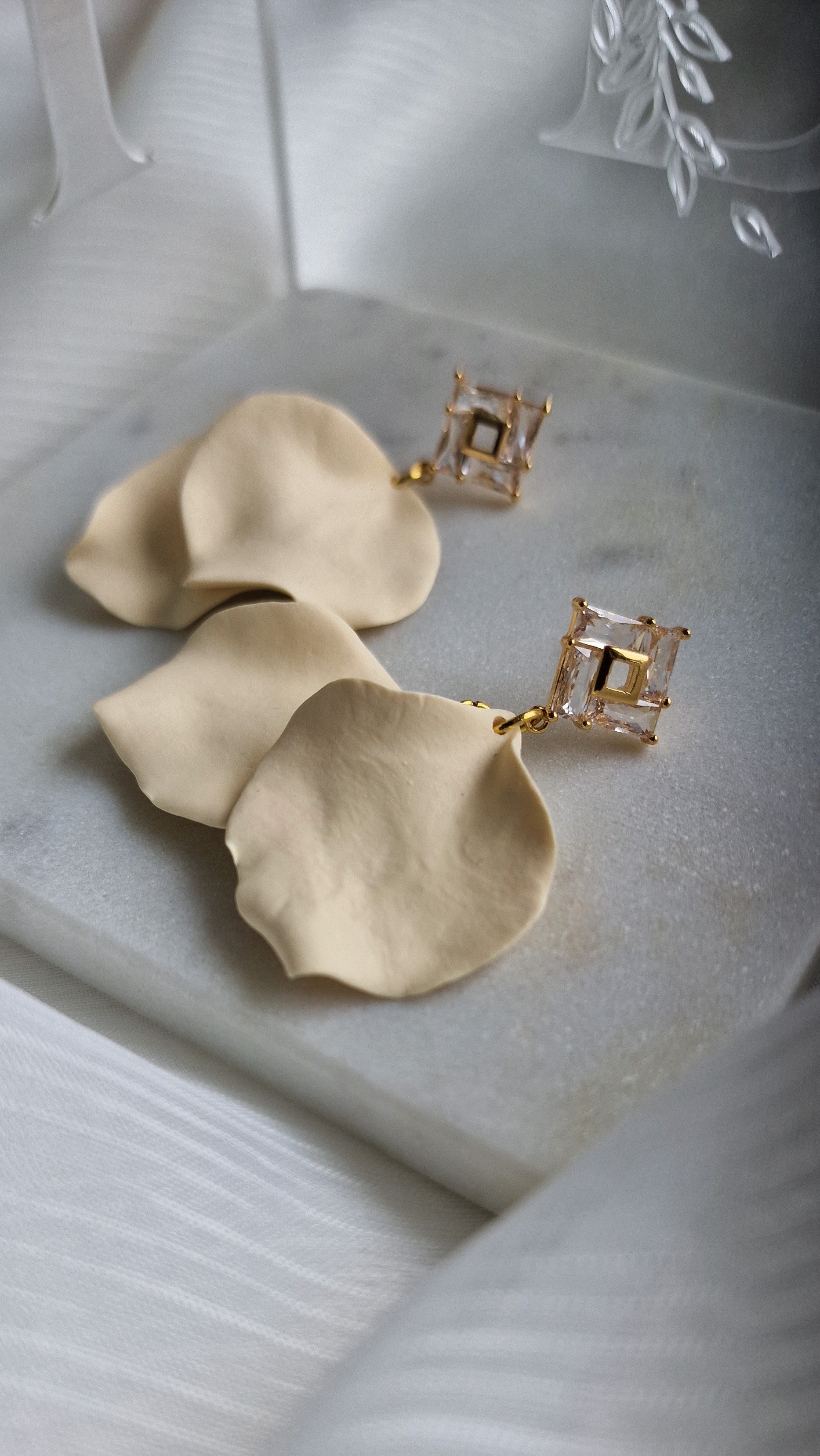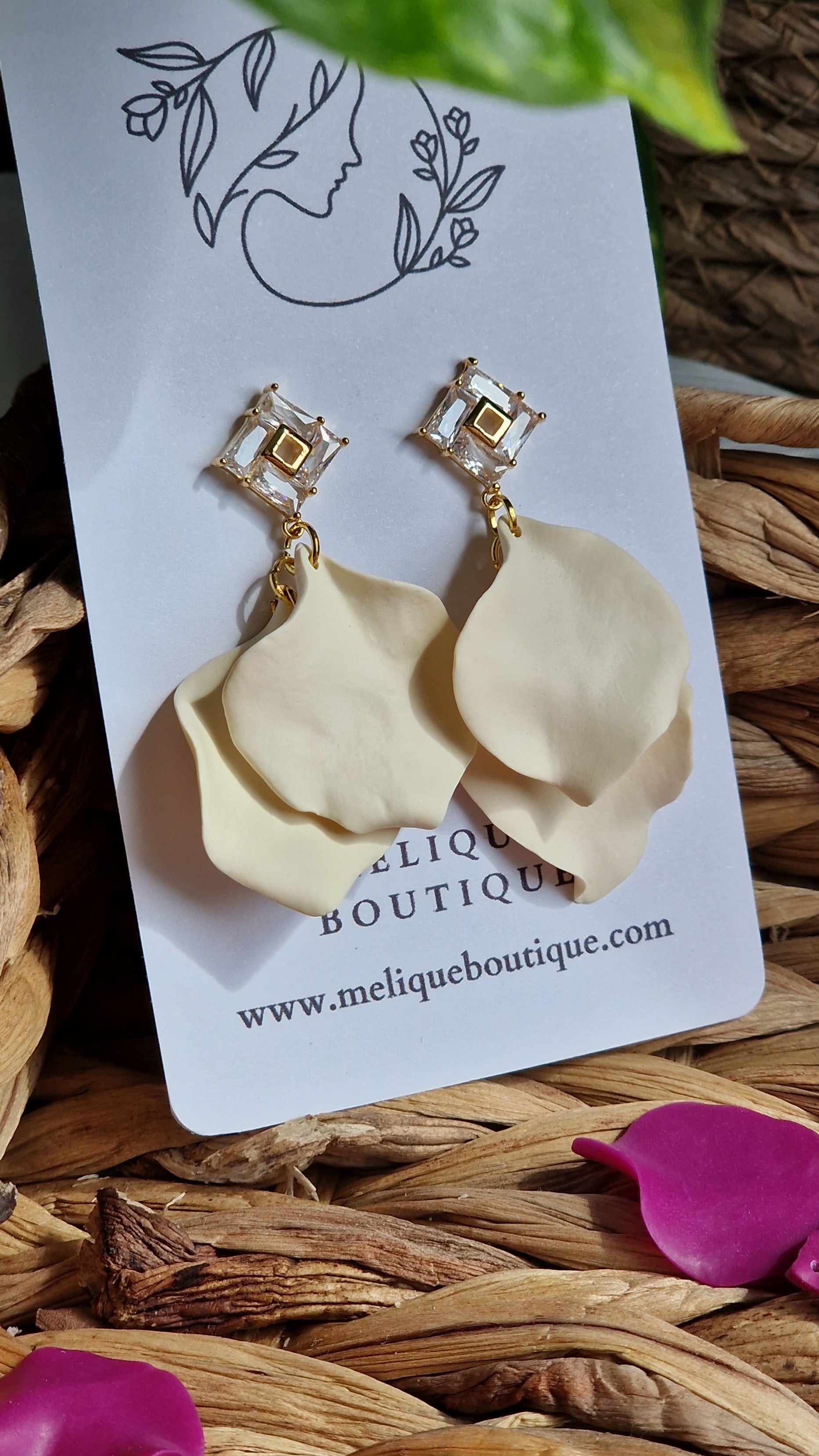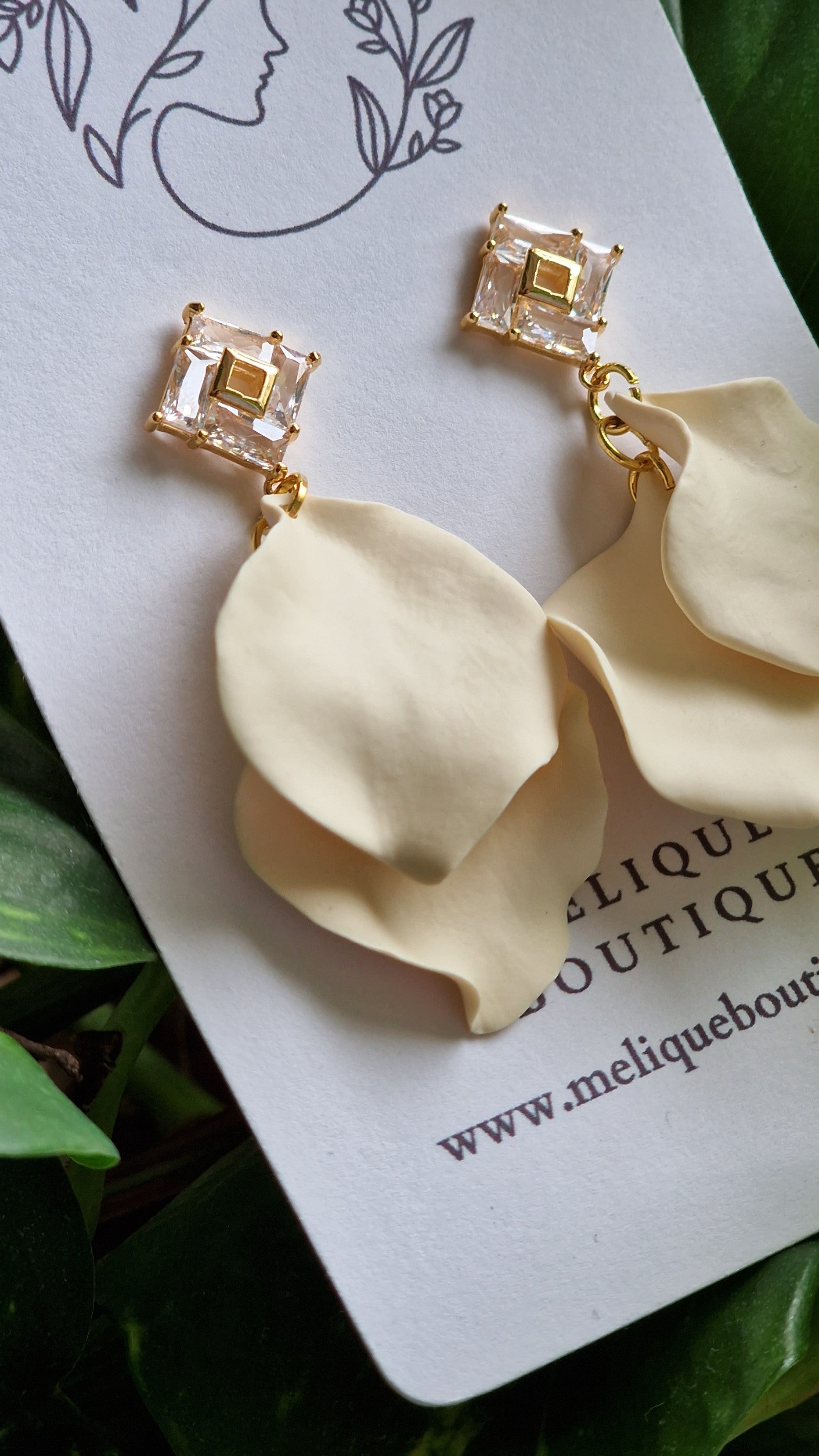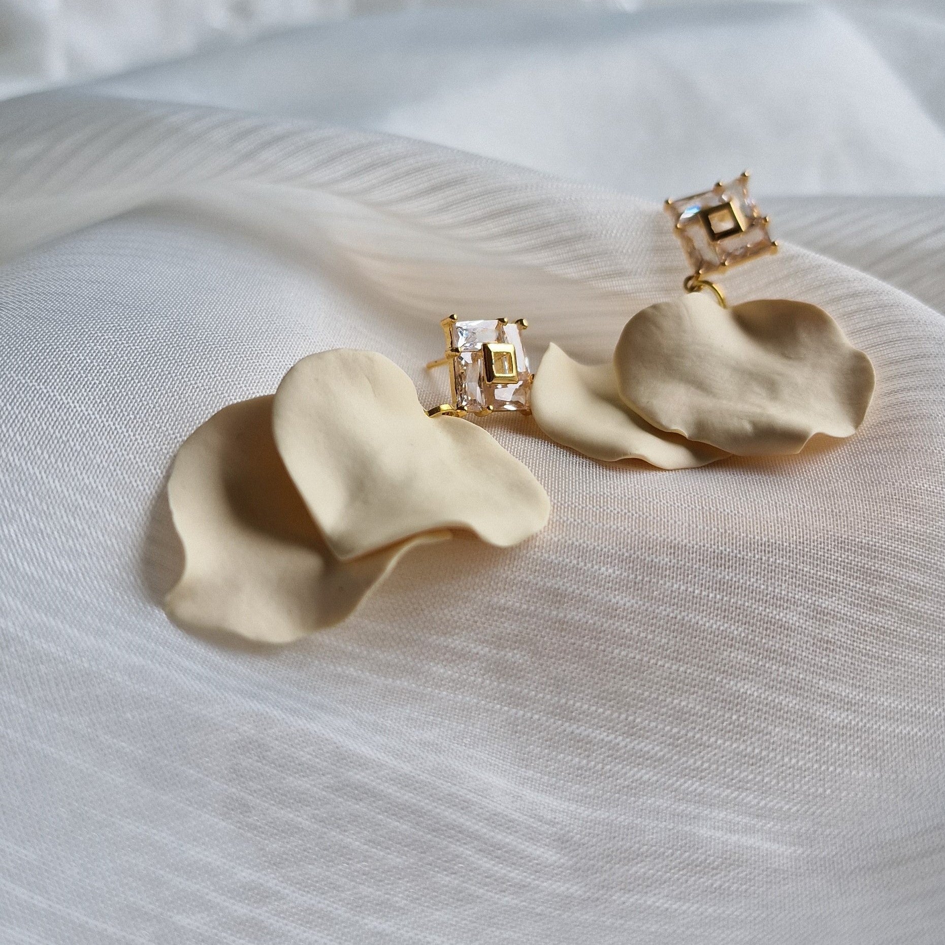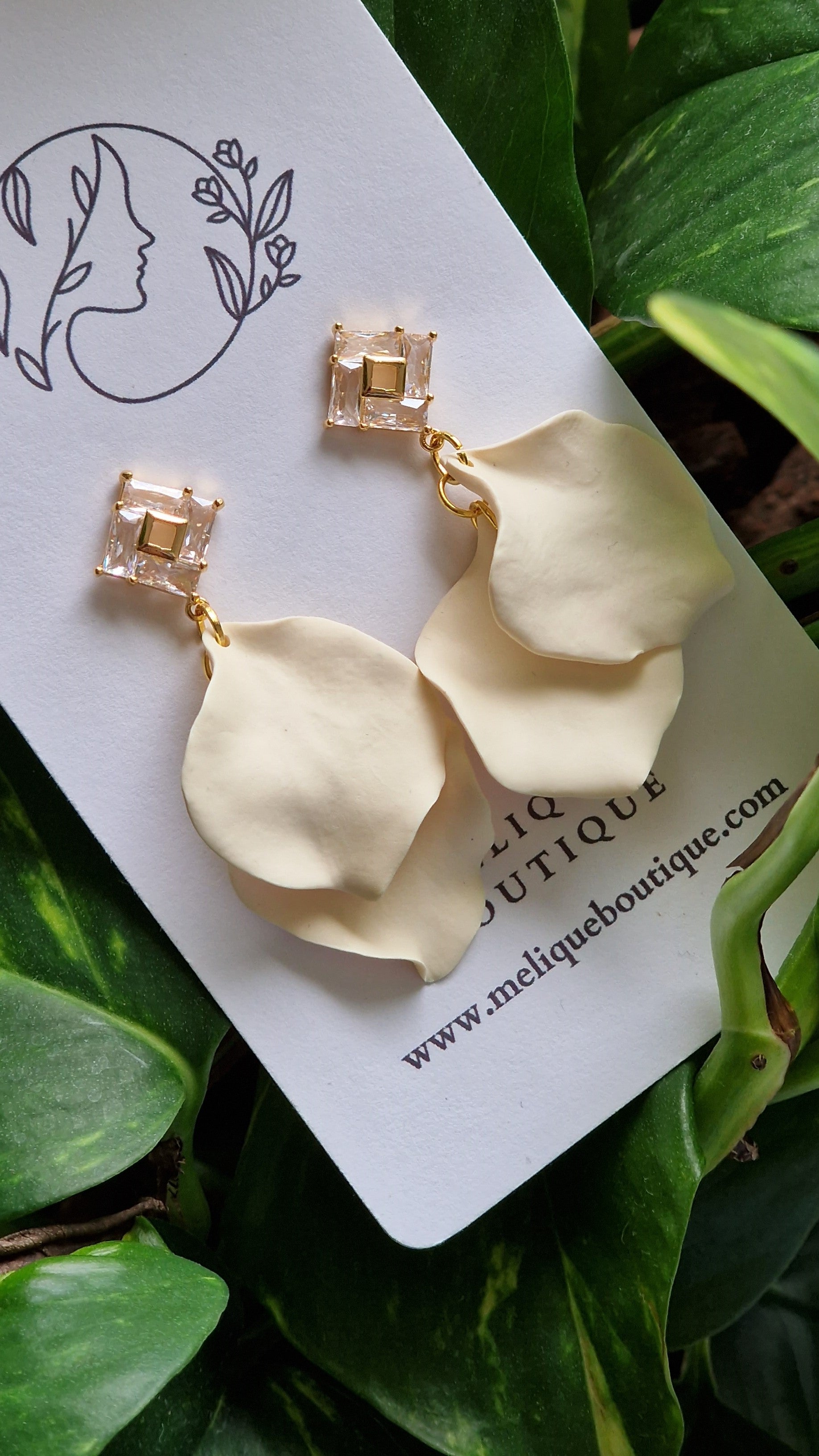 This delicate pair of petal earrings are truly an accessory that makes a difference in any outfit you choose. Each petal is handcrafted by hand with a lot of care.